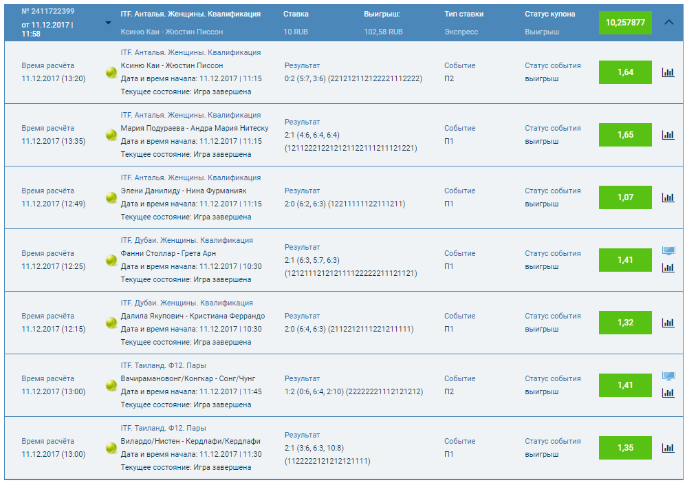 Ну это ты круто зарядил ) надеюсь зайдет у тебя. А я так,балуюсь. На шару. Вдруг залетит :gamer: . Экспресс на кибер спорт из 7 событий-мне что оригинал что кибер,одно пальцем в небо :gopnik:. Вчера и прессы мимо,и одинар тоже не зашел,баллы ставил