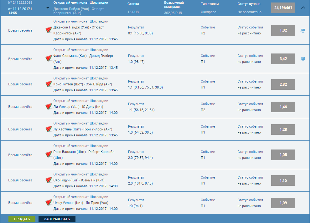 Это кино не прошло. Столько событий и всего одно мимо. Как у Гаврюхи,ужаснулся даже. В пинду эти ставки. :fight: Вот на вечер осталось,правда совсем не рассчитываю на него-коньковы. Лучше бы экспресс этот зашел. Посмотреть вложение 35743 Посмотреть вложение 35742