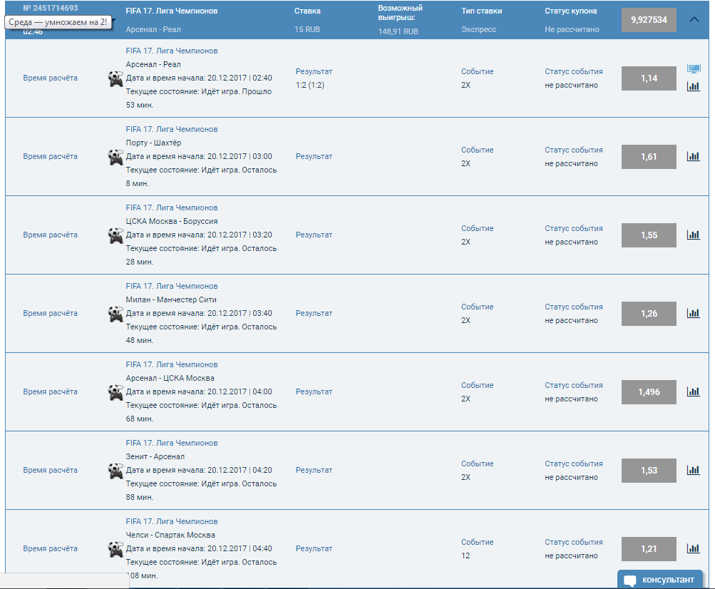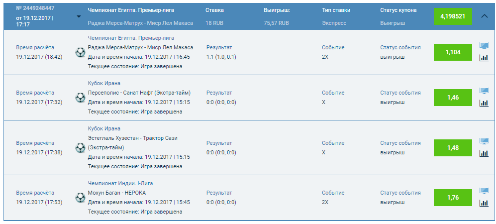 Зашел еще один экспресс ) Ставлю в 1хбет на минимальную сумму 30 центов для участия в ежедневной акции Счастливчик дня