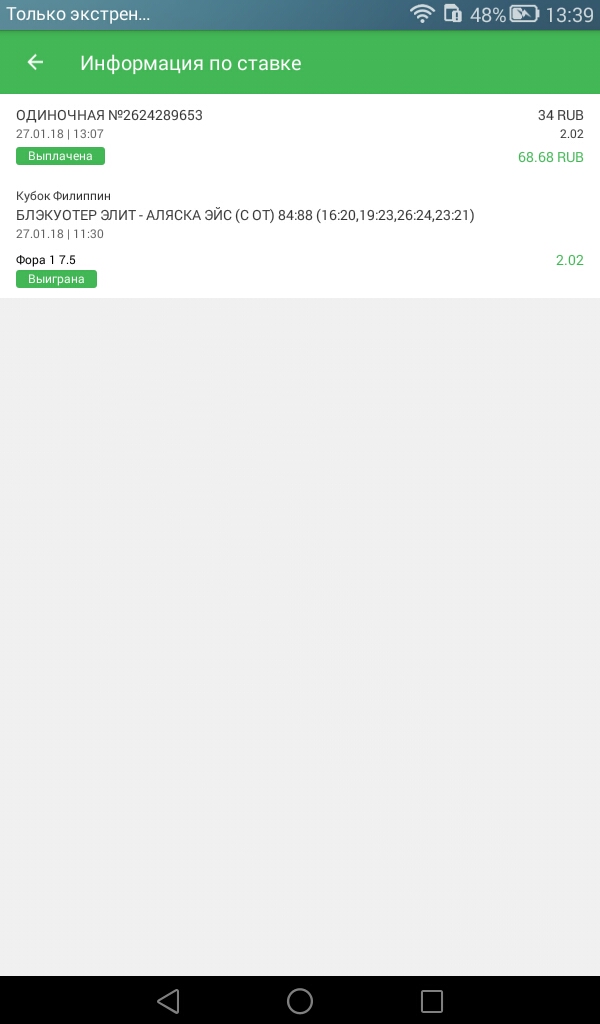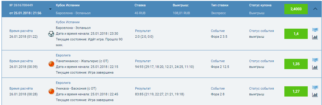 ну вот.филипки не подвели.красиво.на одном матче и -3.5 и +7.5 зашло.вспомнил молодость.правда,суммы другие были,а метод тот же..)Screenshot_2018-01-27-13-39-05.jpegScreenshot_2018-01-27-13-39-16.jpeg
