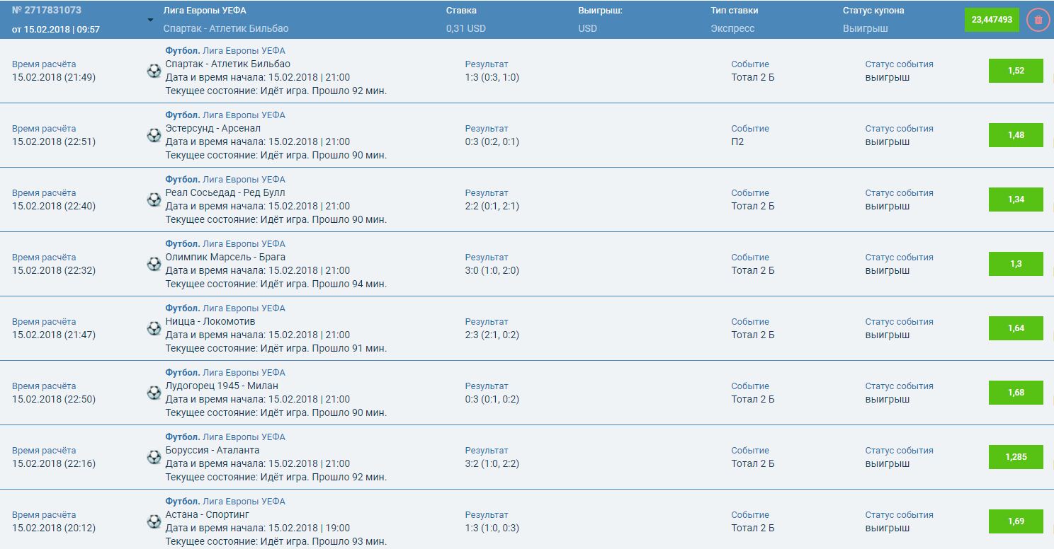 Вот это я понимаю, наконец-то сработал нормальный экспресс, правда мало поставил )) Но тем не менее, Милан на последней минуте закрыл экспресс без возвратов! УРА ))