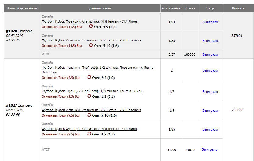 Пресса ( экспрессы) в основном делаю больше трёх и т. д. исходов на маленькие суммы ставок, отсюда и не всегда получается проход оных.