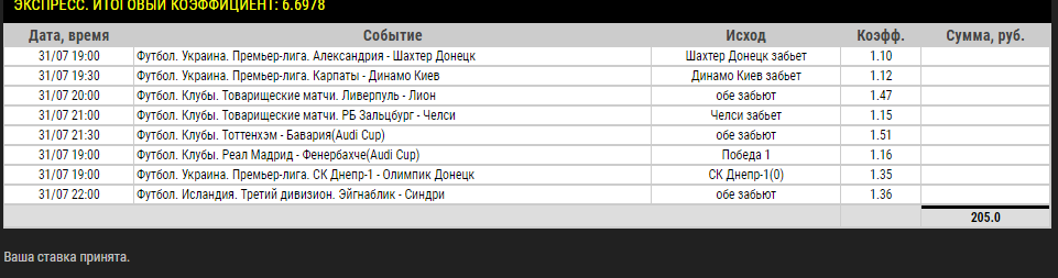 3ий мой не разумный экспресс пошел)) P.S не разбираясь в ставках толком, ставить по 100+ р на меньше матчей пока не готов) лучше уж мелкими на кучу...хз