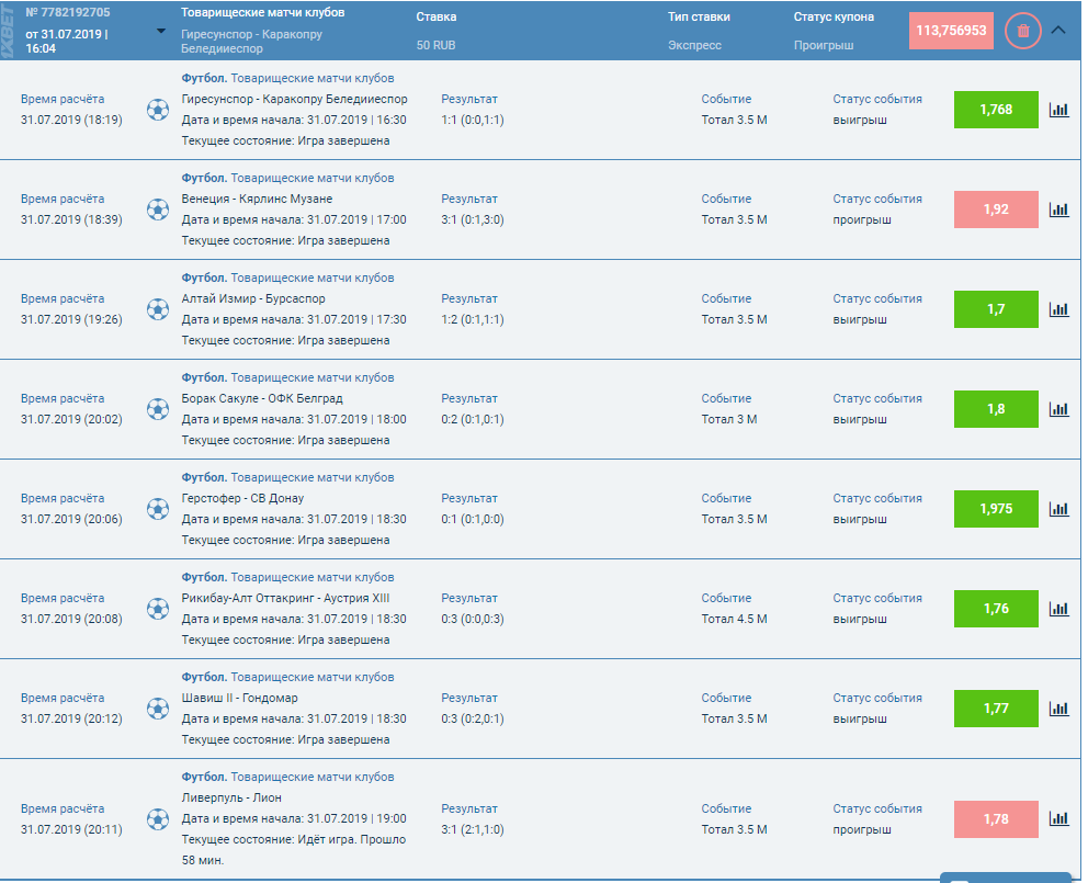 Вот так.... Посмотреть вложение 67585 тотал меньше 3.5 - прогар....
