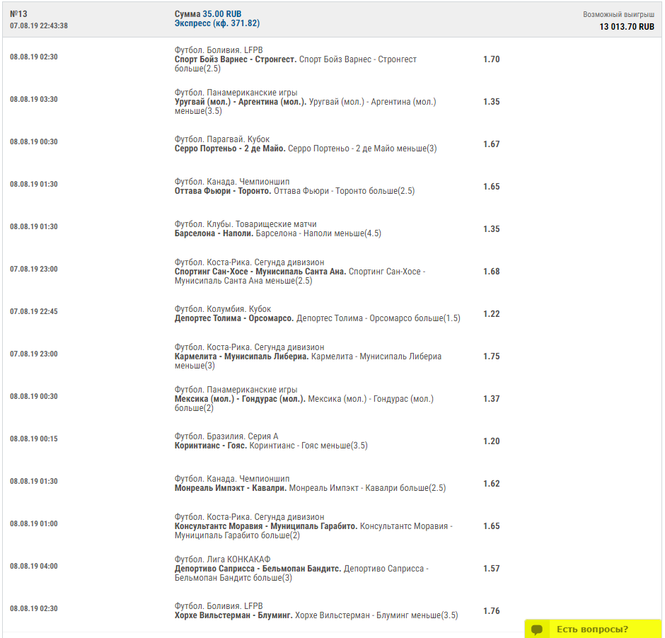А я даже сначала даже не знал что нажимать, пока раздуплился)))Я когда у них регалась, тоже в ставках вобще ничего не понимала, мне муж сказал на тёток поставь и зашла ставка, а кэф 9 с лишним был