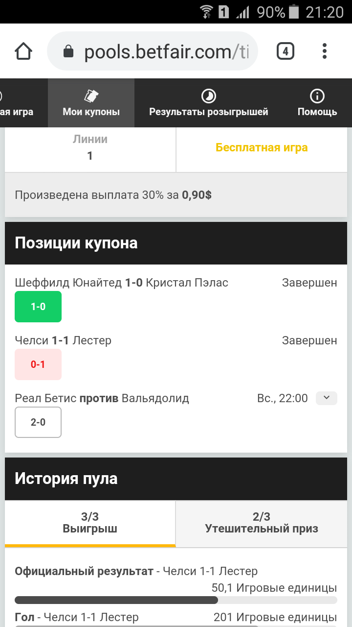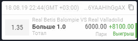 не судьбаГол челси очень не кстати . Так и думал удержите натиск и пройдет ставка. Буду надеется на Бетис 2/3 выплота неплохоя бу
