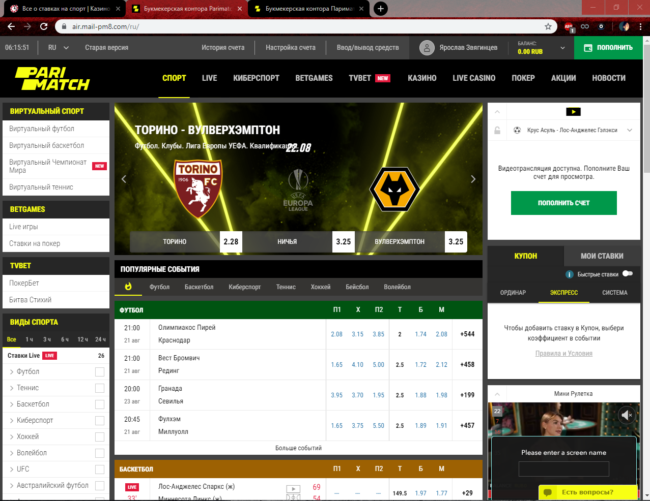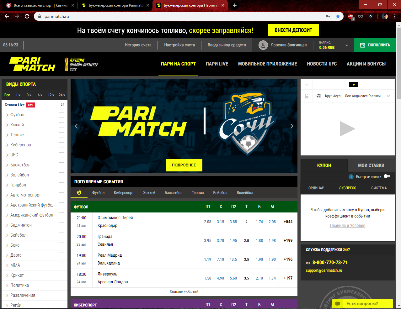 Ставки на спорт: Экспресс , Ординар , Лайв / Ставки на футбол и другие виды спорта.