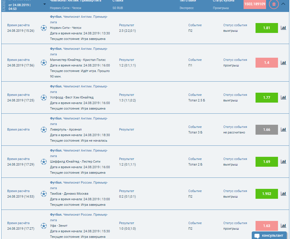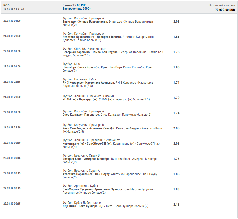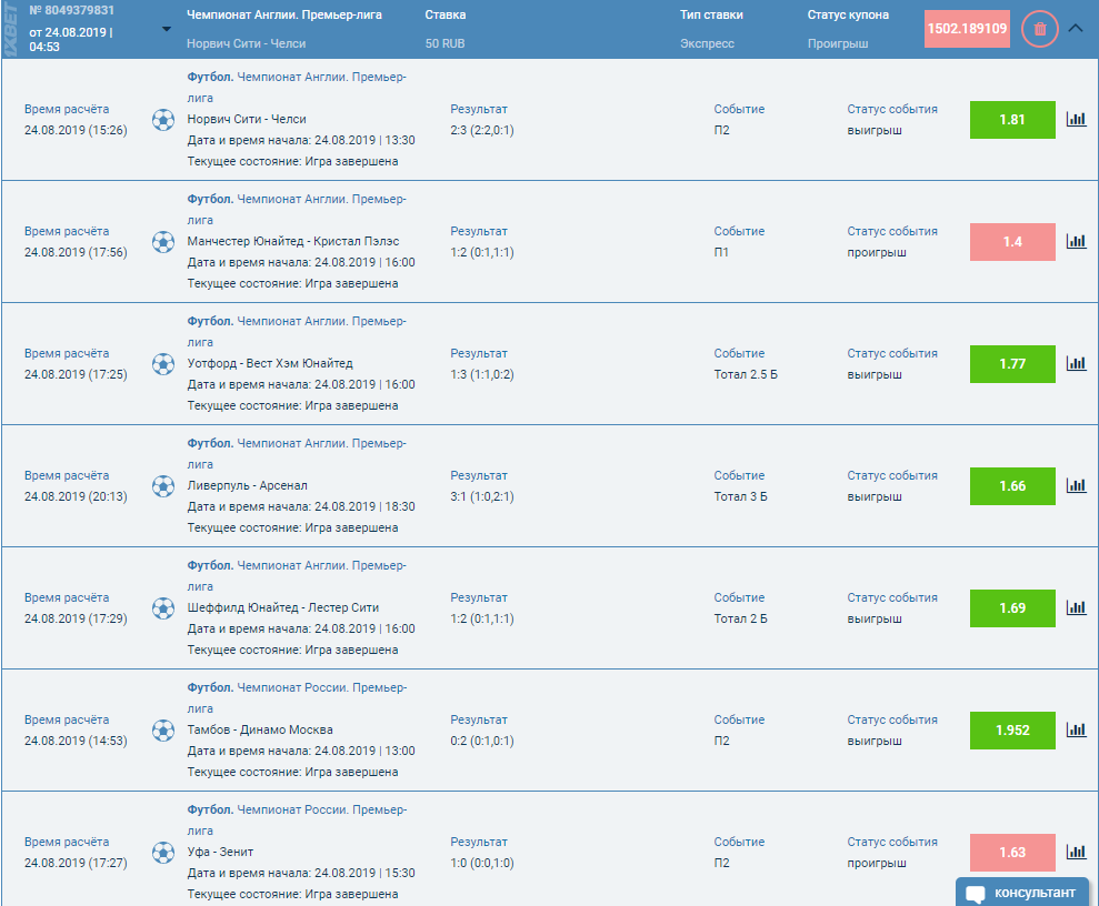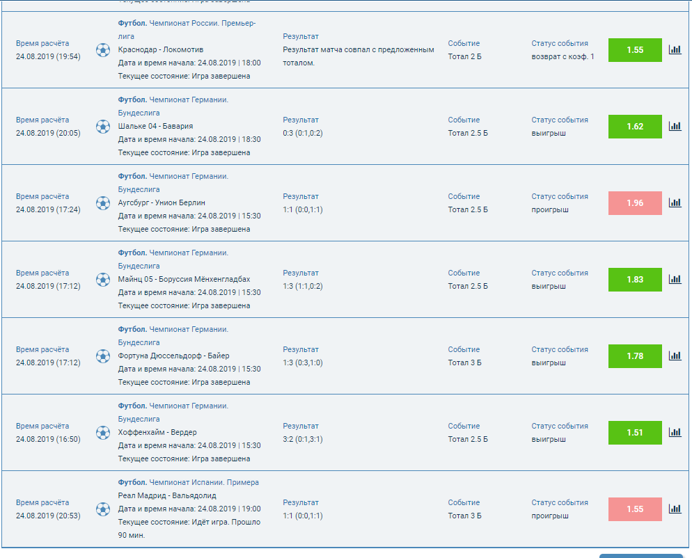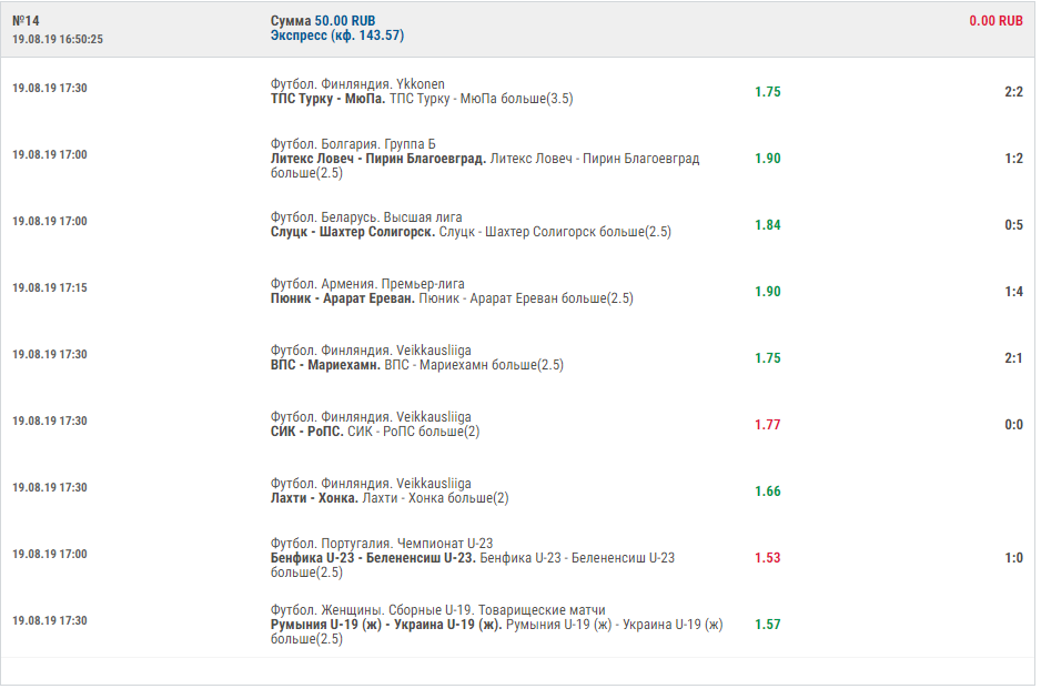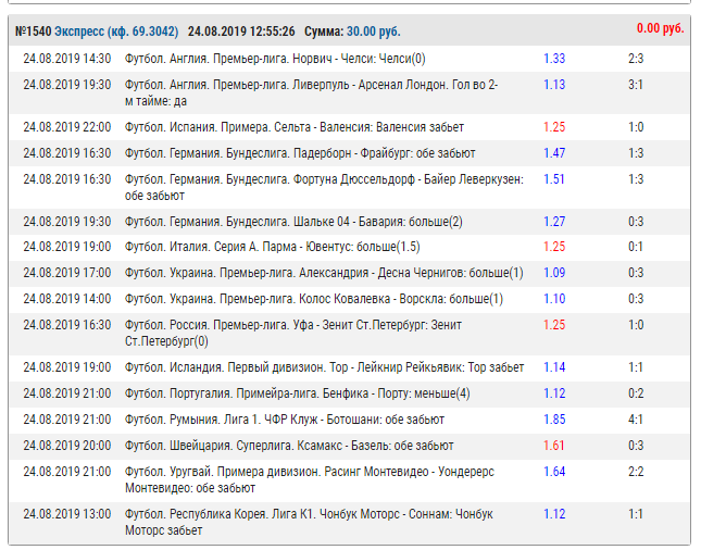 Фе, аж противно...фавориты России и нет( для меня) уже не те...ну да. составы уже попеременялмсь 10 раз) Прошло то время, когда в Манчестере звезды были, а в зените Кержаков))) Манчестер вообще гол забил на 80+ минуте...фу.. Ждем 100 кредитов на след. ставку) А в этой я думал сидел около часа даже, как поставить...ну хоть Челси не облажалась, а почти) Надо было не выеживаться, не первых ТБ 2.5 ставить, на Россию ТМ 2.5...