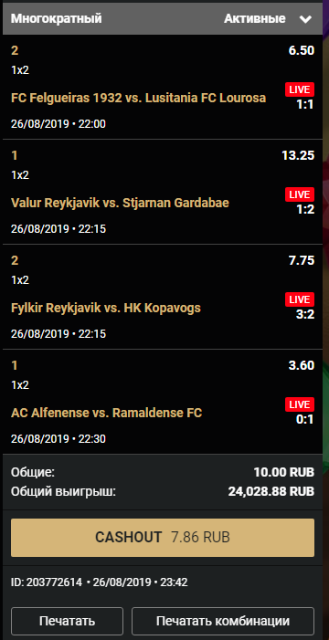 Примечание: кешаут и возвращенные ставки исключены.