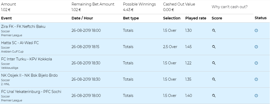 Все FreeBet за успешные серии будут зачислены на счет 9 – 10 сентября. Минимальный коэффициент пари участвующих в серии - 1,8. В акции участвуют пари типа одинар. Колличество FreeBet доступных одному игроку не ограничено!