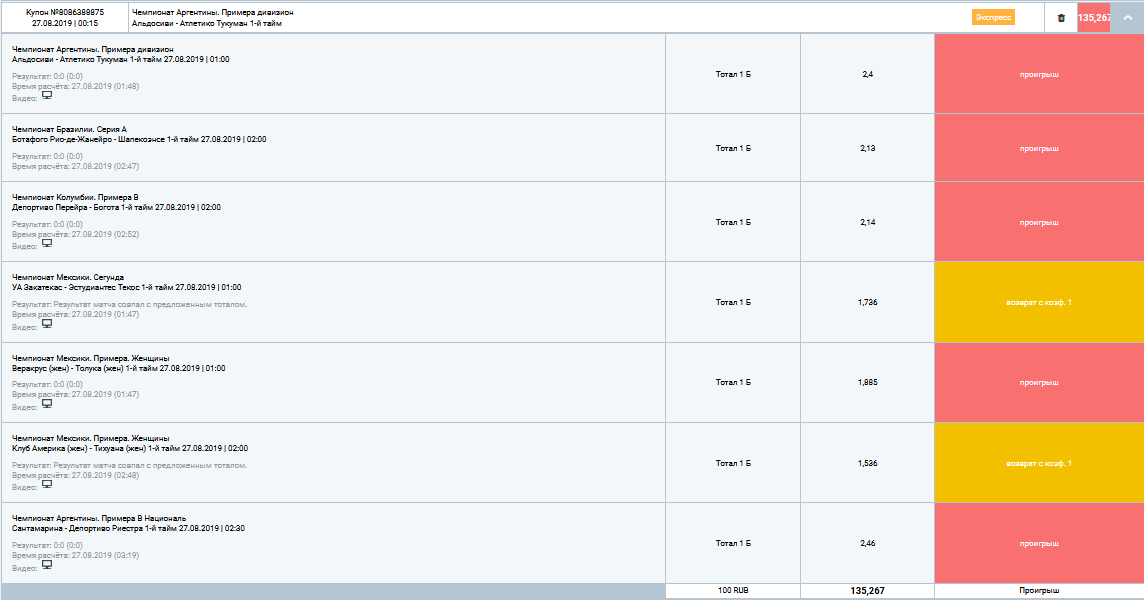 Так ты попробуй поставить хоть раз прематч на полный матч и нормальные лиги (например сейчас ЛЧ и ЛЕ идёт) а не 3ю лигу Гватемалы 1й тайм))))
