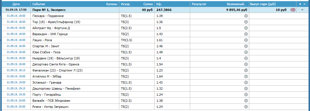 вот не думая ставил, это факт...вот когда научусь не расчитывать на такие матчи...( Спартак с ЦСКА то 0-1 сыграл....а тут Зенит...еще и забил...ну на что надеялся ТМ тут решает, конечно, в таких матчах) Россию точно лучше не брать,)