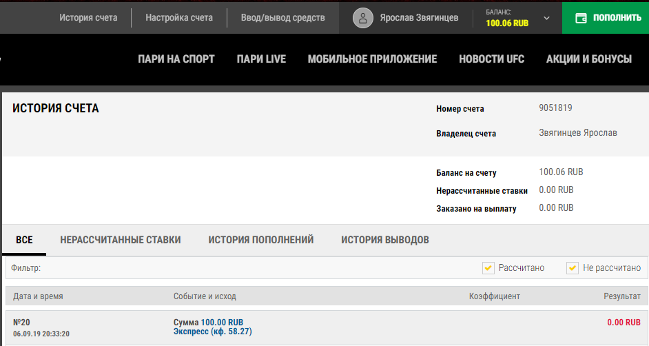 говорил же, что,что то не то с париматчем сегодня было...то матчи пропадали с экспресса, то уже проигранный матч не исчезал в нем..видно после размотки в поддержке вернули проигранные 100р) шанс еще есть..)