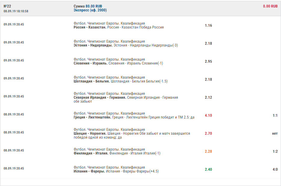 Ахаха, хотел вообще поэкспериментировать с точным счетом) Еще кэф макс. 2000, пришлось Россию просто победу поставить, а хотел Фору ( -2.5) )) Ну это чисто на цифры экспресс.
