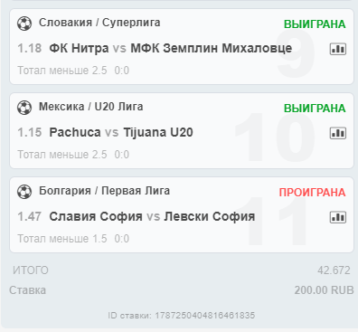 да сыграла одна, в покердоме, на 3 матча) что бы эти поставить) да видимо никогда...хотя помню на иксбете все ТМ на кэф 60 где то зашло, правда тогда поставил 11 руб)) вот ловлю на покердоме целыми днями фрибеты...пытаюсь сотку поднять с него и поставить...пока не зайдет буду сидеть)