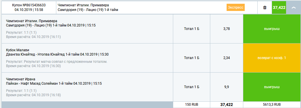 У меня сегодня просто ужас, единственный Краснодар который мог спасти, нужен был всего лишь год от них и 9 коэффициент зашёл.. Играли в большинстве даже.. Хорошо проспал все матчи и без нервов обошлось)