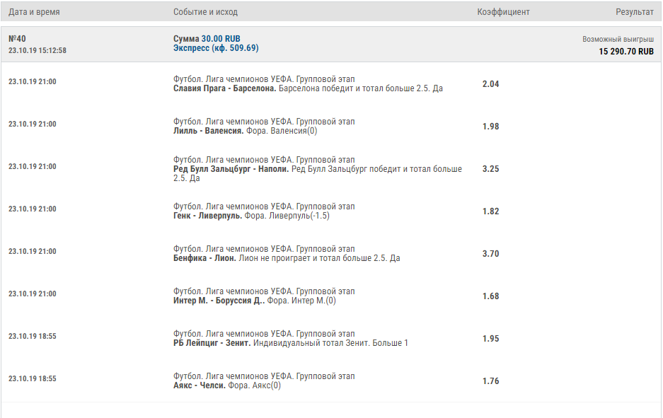 :D Надеюсь, хоть один из высоких кэфов в этом паровозе зайдет) Правда хотел все высокие запилить, победа Зенита, например)