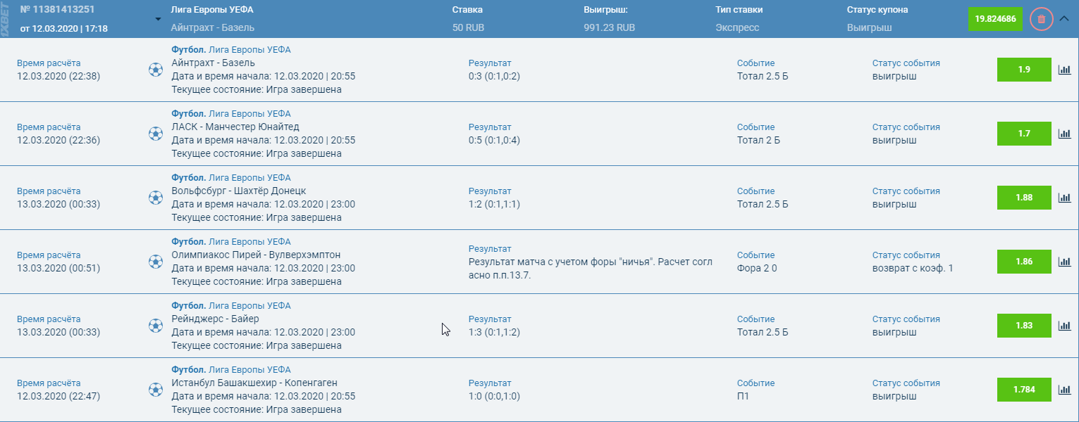 вот такой экспрессик собрал на ЛЕ вчера так бы 36 кф заходил если бы волки не подвели у олимпа красная была забить не смогли ну нечего бывает тоже деньги