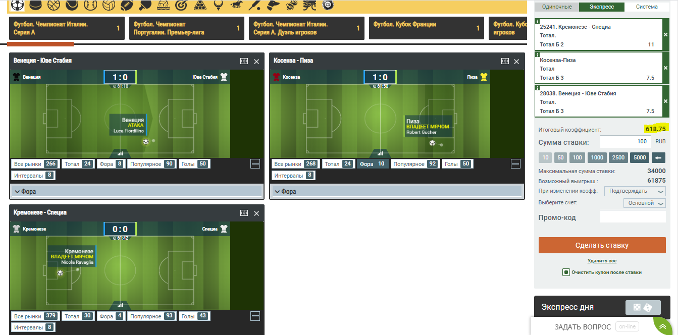 В случае проигрыша возмещу 100 рублей на ЯД или QIWI первому кто выложит скриншот купона с тремя этими исходами )