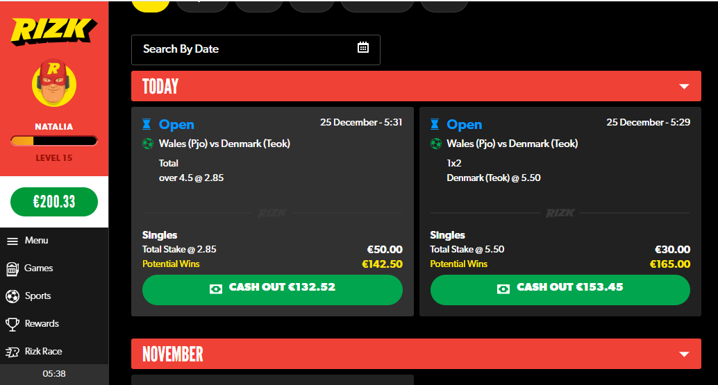 Углядела я что у меня на счету 3,5 евро запылилось, покатала малость слоты стало их 280, слоты поднадоели, и пошла в спорт, а там 1 единственный матч киберфутбольный в лайве вторая половина идёт и счет 2:1, Ставлю 30 евро на победу второй команды и 50 евро на тотал 4,5 больше