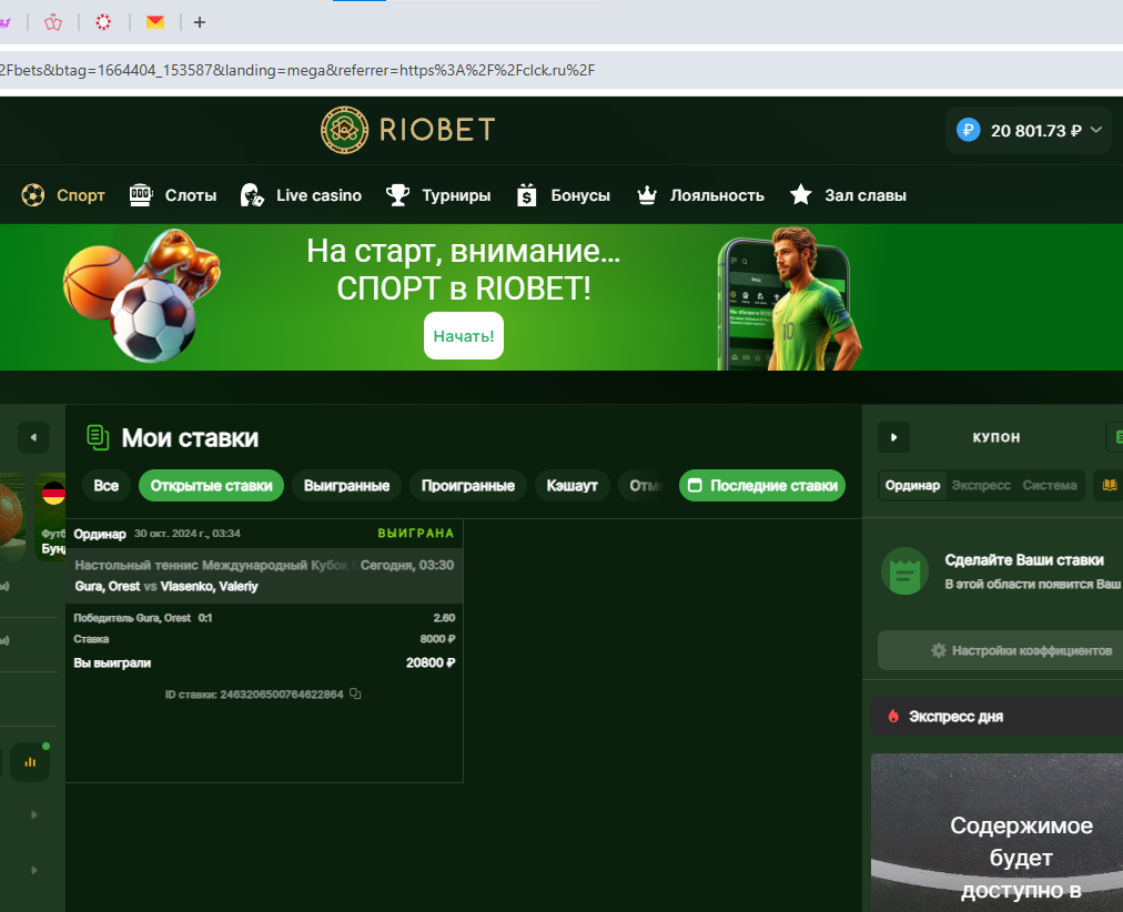 Ставки на спорт: Экспресс , Ординар , Лайв / Ставки на футбол и другие виды спорта.