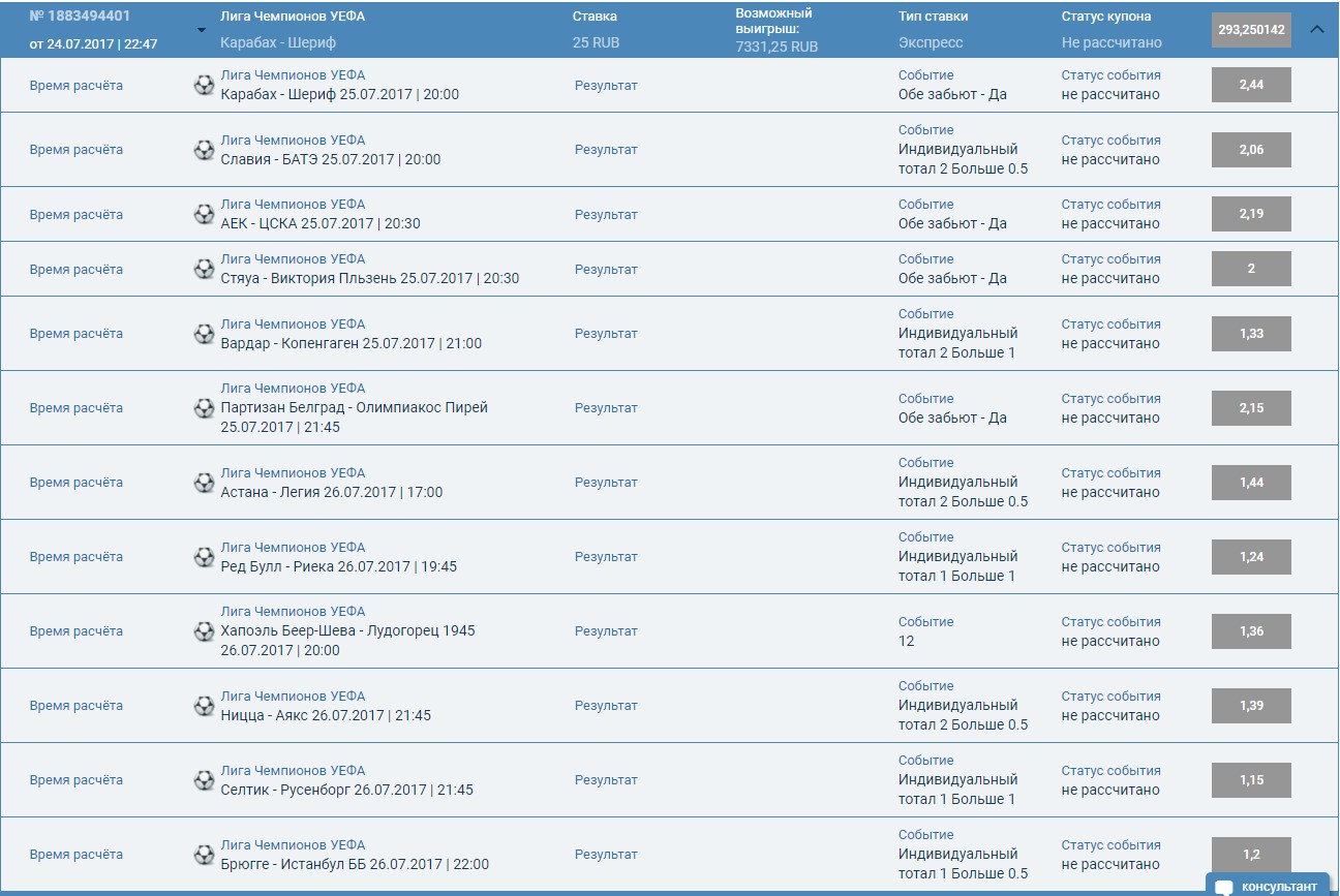 Я тоже поставил, но на первый тайм АЕК - ЦСКА и Партизан - Олимпиакос , рискнул ничейки....
