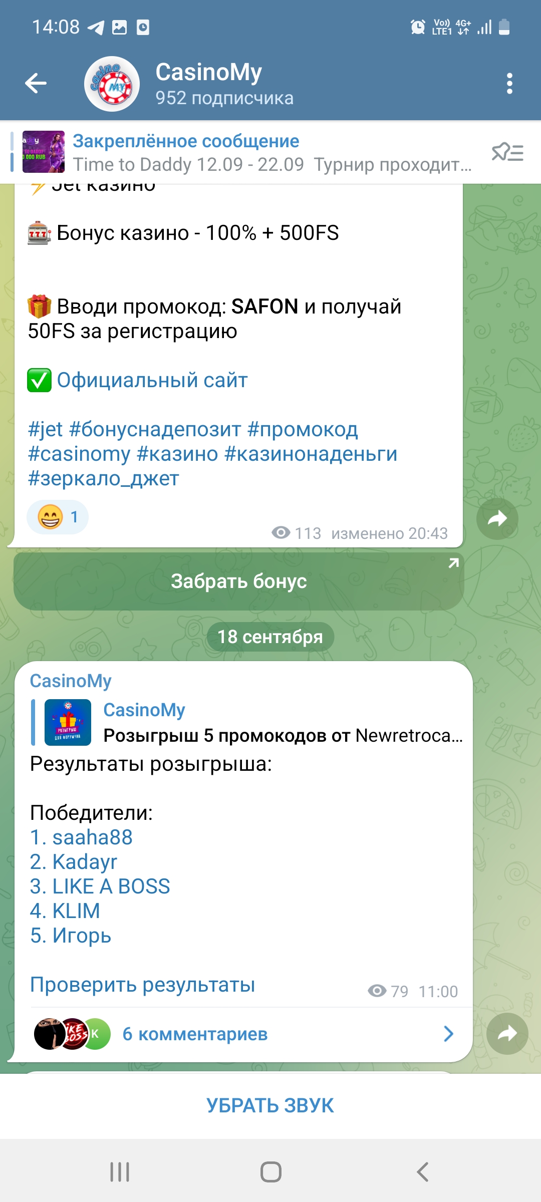 Розыгрыш 5 промокодов от Newretrocasino (https://mycasino.pw/threads/newretrocasino-pervyj-depozit-200-300fs-akcii-frispiny.11191/)! Кто еще не зарегистрирован в этом казино, регистрация строго с этой темы - https://mycasino.pw/threads/newretrocasino-pervyj-depozit-200-300fs-akcii-frispiny.11191/ Для участия обязательна регистрация на форуме https://mycasino.pw/ все призы будут выданы там! Обязательна подписка на нашу группу - https://t.me/forumcasinomy и канал https://t.me/casinomyforum Заходим в тему на форуме (https://mycasino.pw/threads/tema-dlja-konkursov-nashego-telegramm-kanal.10854/) и пишем любое сообщение! Нажимаем кнопку ниже и ждем рандом! ВНИМАНИЕ! Если победитель не напишет сообщение в теме на форуме, то приз аннулируется, поблажек не будет Рандом выберет победителей завтра в 17.00 по МСК Пост конкурса здесь - https://t.me/casinomyforum/644