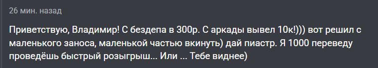 ВНИМАНИЕРозыгрыш 1000 рублей Наш форумчанин с бездепа вывел 10 000р в казино Аркада и выделил для розыгрыша 1000р Для участия обязательна регистрация на форуме https://casinoforum.pro/ все призы будут выданы там! Обязательна подписка на нашу группу - https://t.me/forumcasinomy и канал https://t.me/casinomyforum Заходим в тему на форуме (https://myforum.website/threads/tema-dlja-konkursov-nashego-telegramm-kanal.10854/) и поздравляем с заносом! Нажимаем кнопку ниже и ждем рандом! Призы: 1-2 место - по 500р на пиастрикс 3-7 место - по 200 форумныж кредитов ВНИМАНИЕ! Если победитель не напишет сообщение в теме на форуме, то приз аннулируется, поблажек не будет Рандом выберет победителей сегодня в 20.00 по МСК! Всем удачи! Пост конкурса в телеграмм - https://t.me/casinomyforum/4001