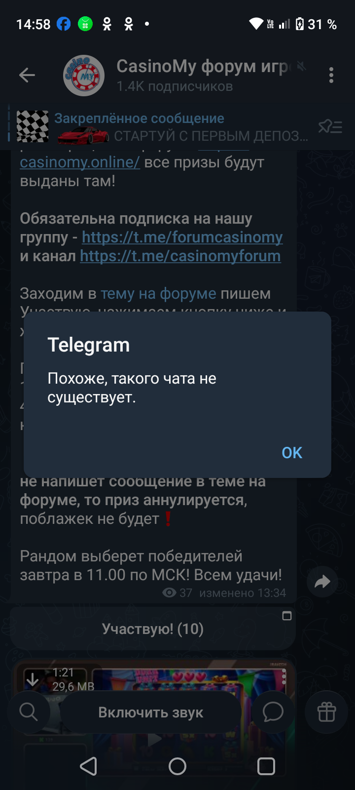 djek Ловец Скейтеров Проверенный 18 Фев 2021 80 23 39 Credits ¢77 Среда в 15:55 #1,567 С заносом участвую, при добавлении в чат в тг пишет нет такого чата Вложения Screenshot_20251203-145816.png 319.2 KB Просмотры: 4