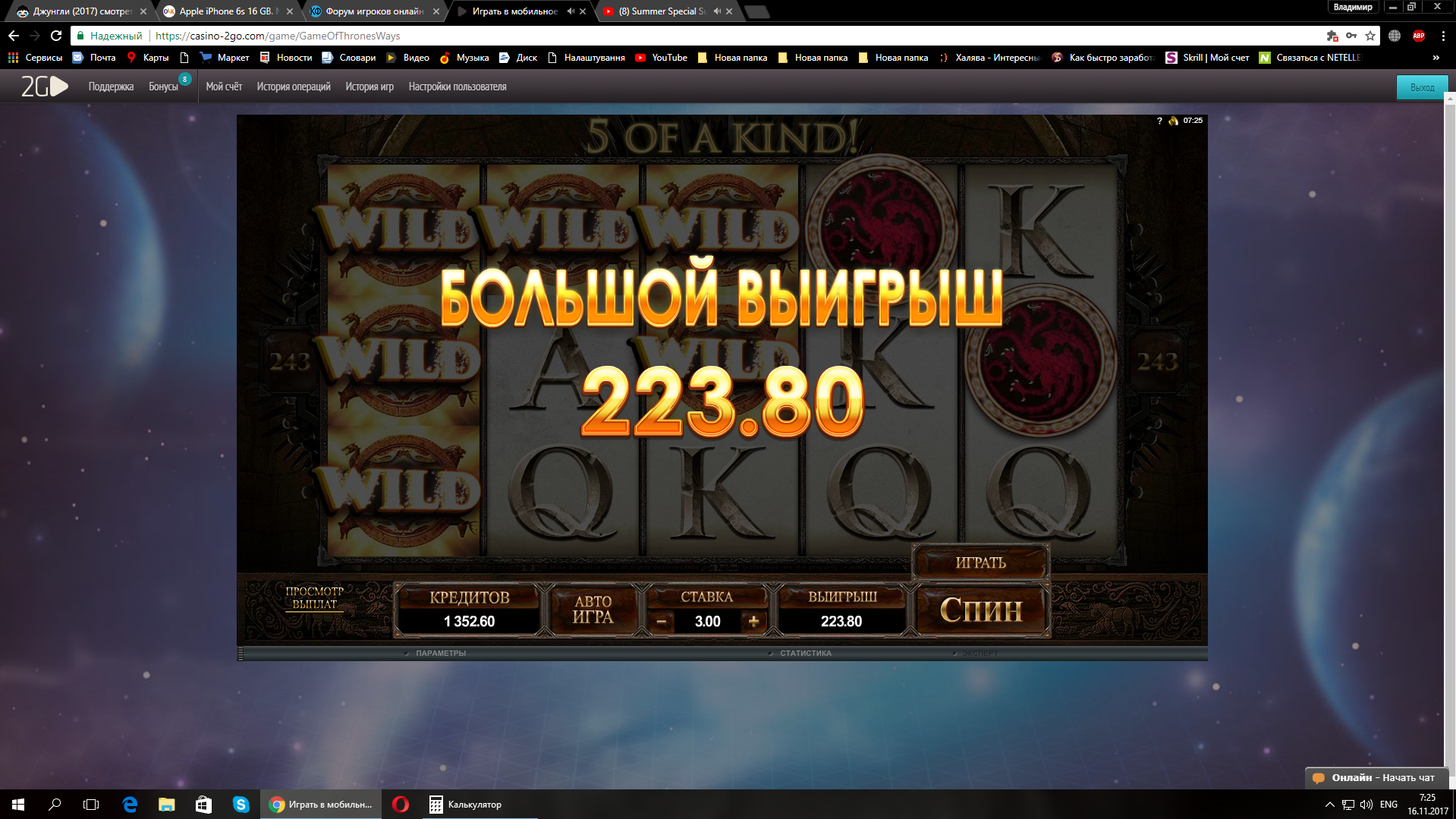 а я вот как раз наоборот, если тащу, то и выигрыш и конкурс) по поводу моего мнения об отдаче, с таким раньше не встречался, может раньше я жил просто под счастливой звездой, а теперь небо перевернулось?) Иммортал по мелочи пройден до половины Джоя - не было бонусов выше х50, та же история с плейбоем, но там поменьше -3 бонуса вроде, в драконов просто всажено 500 руб. без бонусов, и разок троны просто полянку метнули. Сейчас еще Ариана скушала 1к, поднимался до 3к, но умножения выше х30 так и не видел, просто удалось подняться дергая ставки.