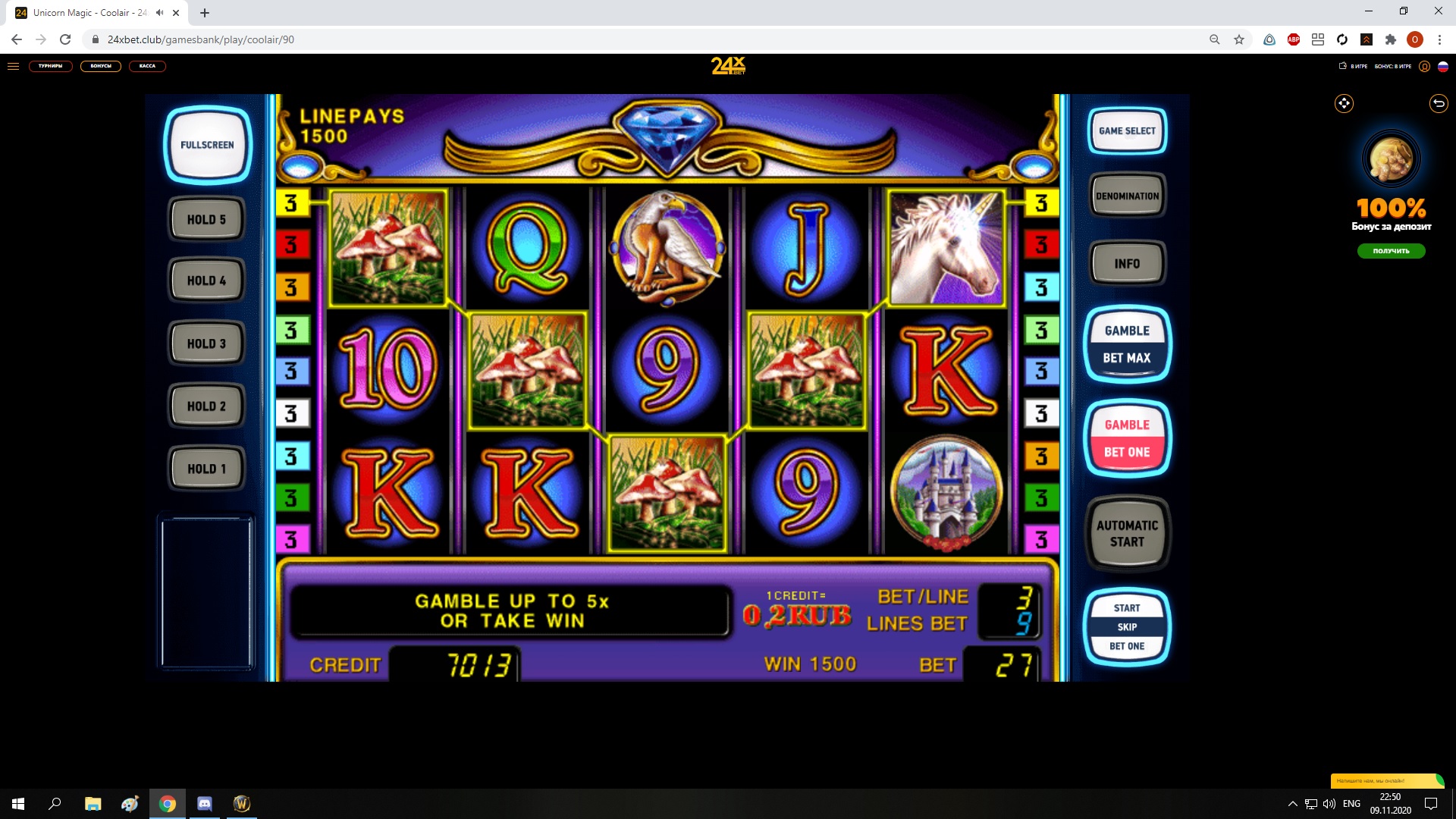 - Играть можно как на бонусные деньги полученные за депозит так и на основной счет.