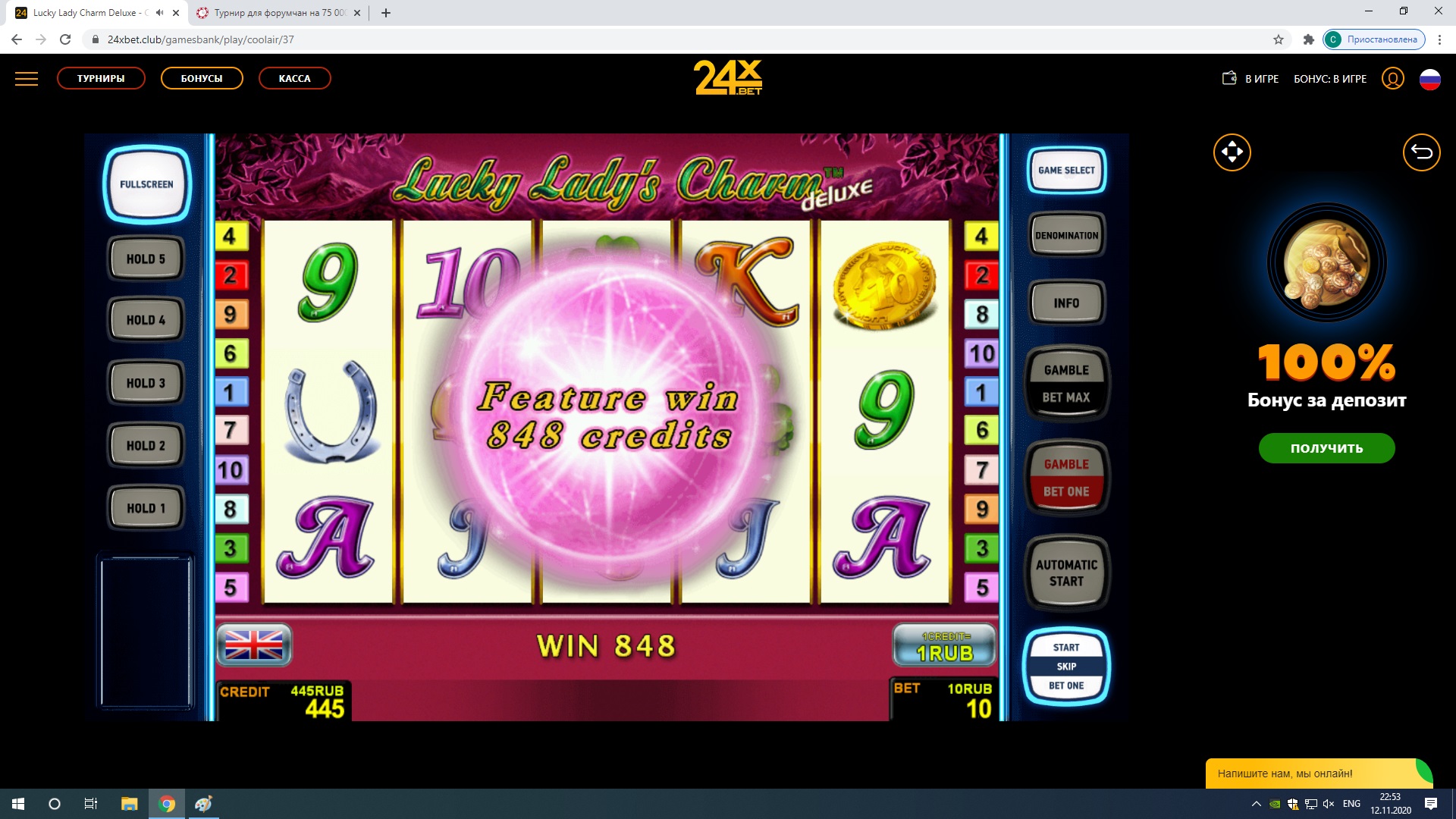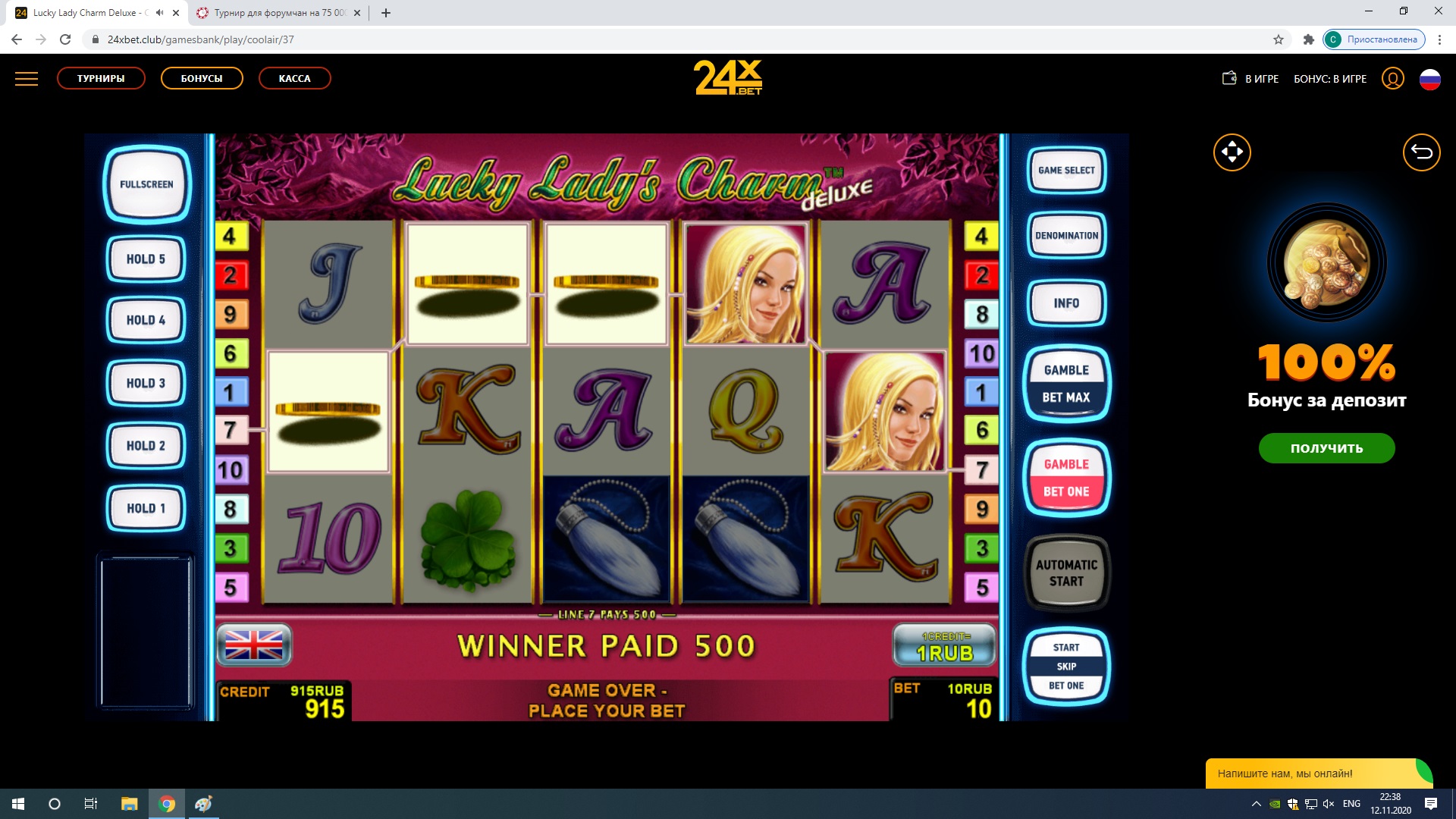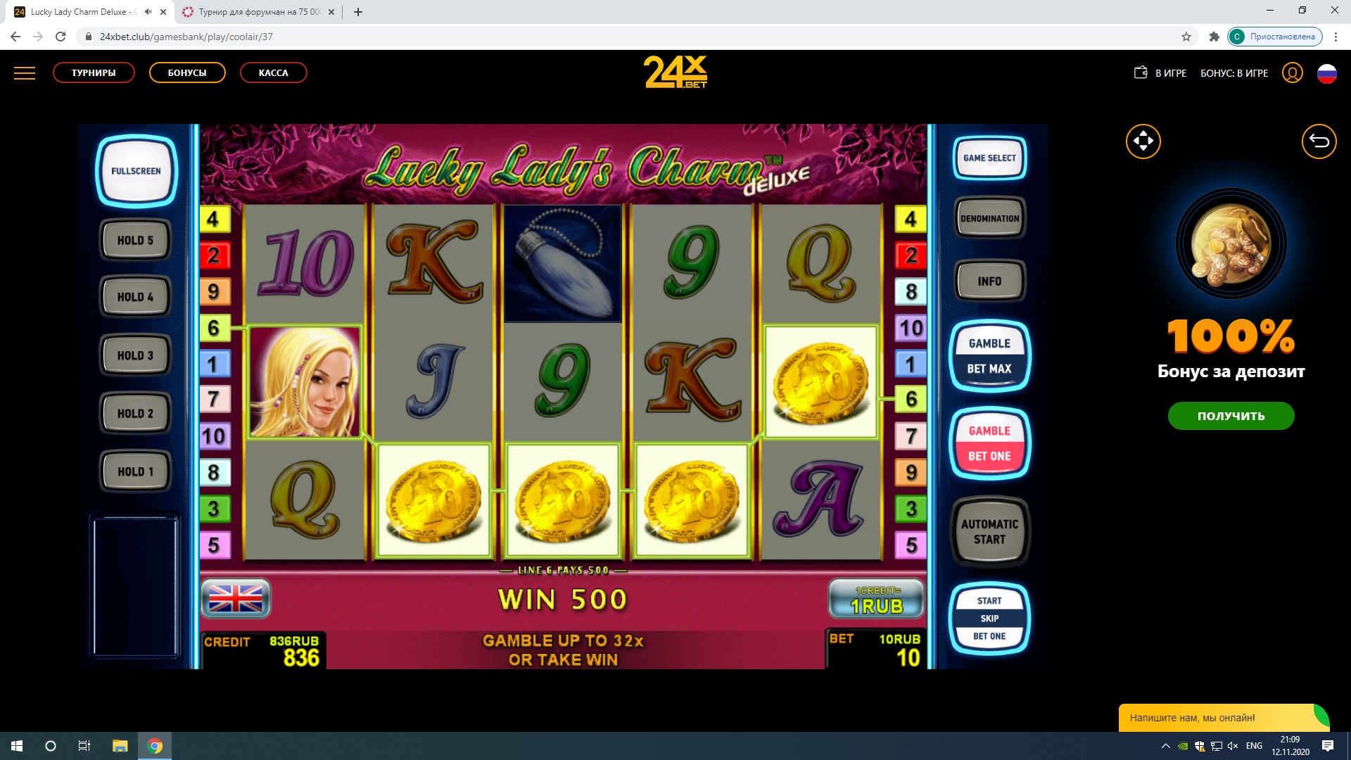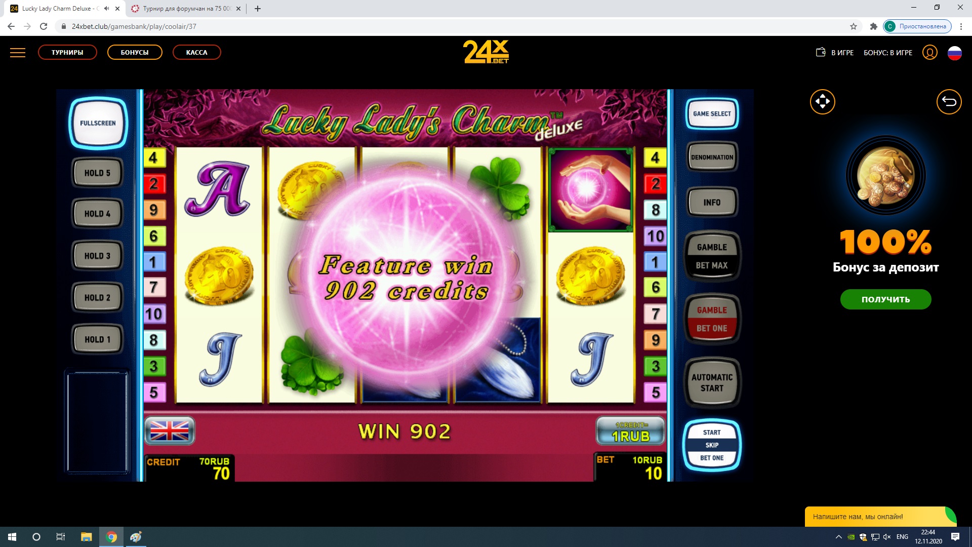 Слот дня с 12.11.2020 14:00 по МСК Lucky Lady Charm Deluxe