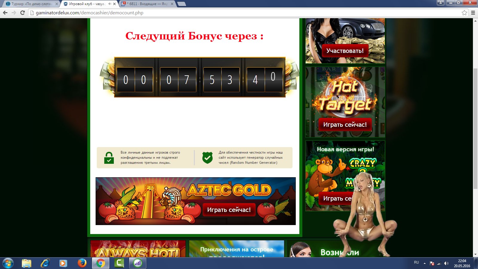 Займите свое место среди самых активных игроков и получите корону победителя! Участвовать могут все, но победят только лучшие! Наберите как можно больше ДЕМО-БАЛЛОВ до окончания турнира и станьте одним из 30 игроков, которые получат РЕАЛЬНЫЕ денежные призы.а зачисление интересно бонусное или реал за место в турнире