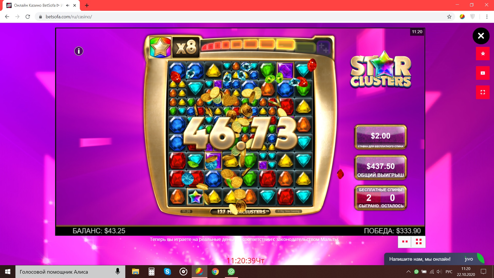пример игрок словил умножение х450 по 50 руб 35 очков х 2= 70 баллов