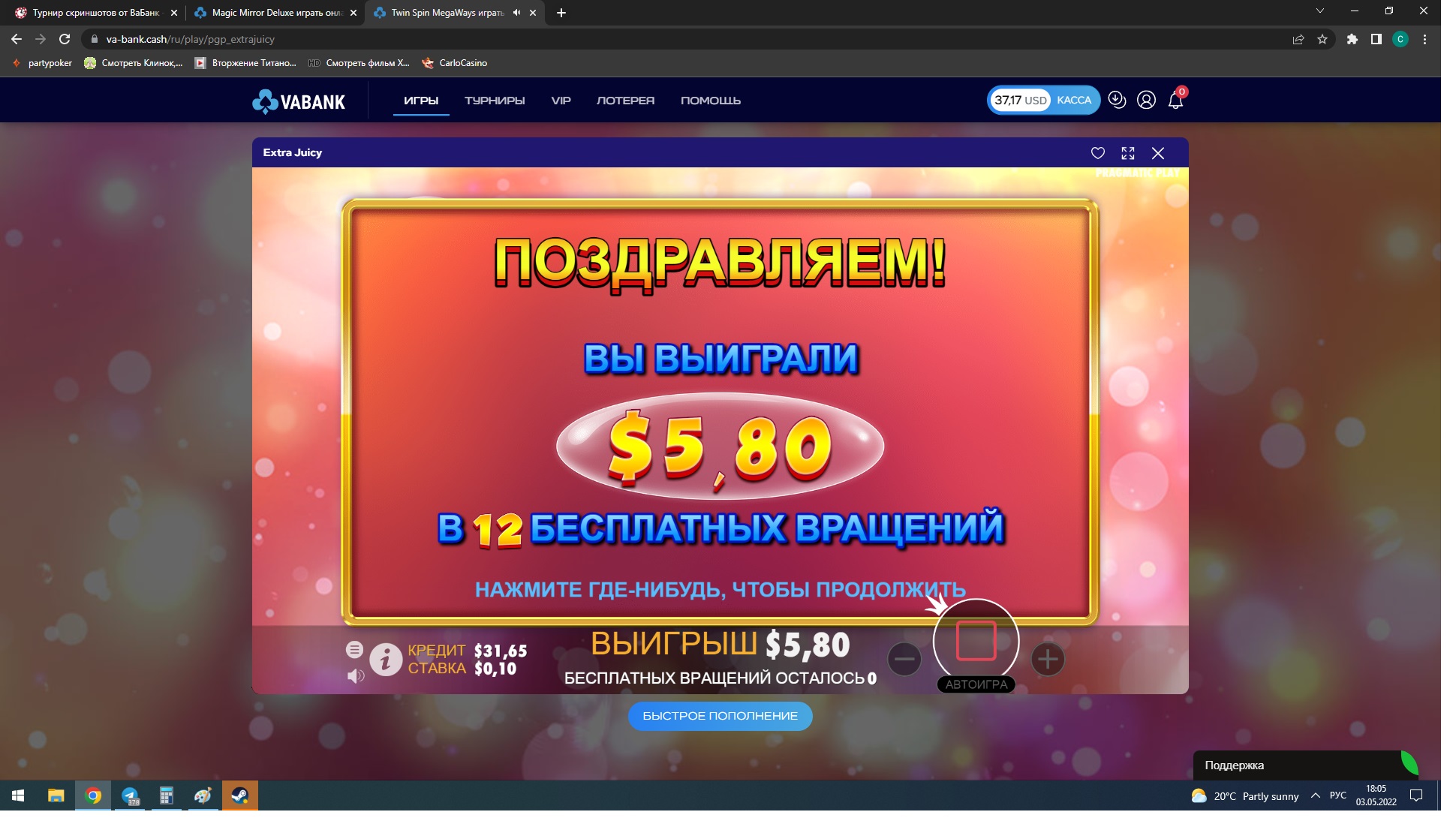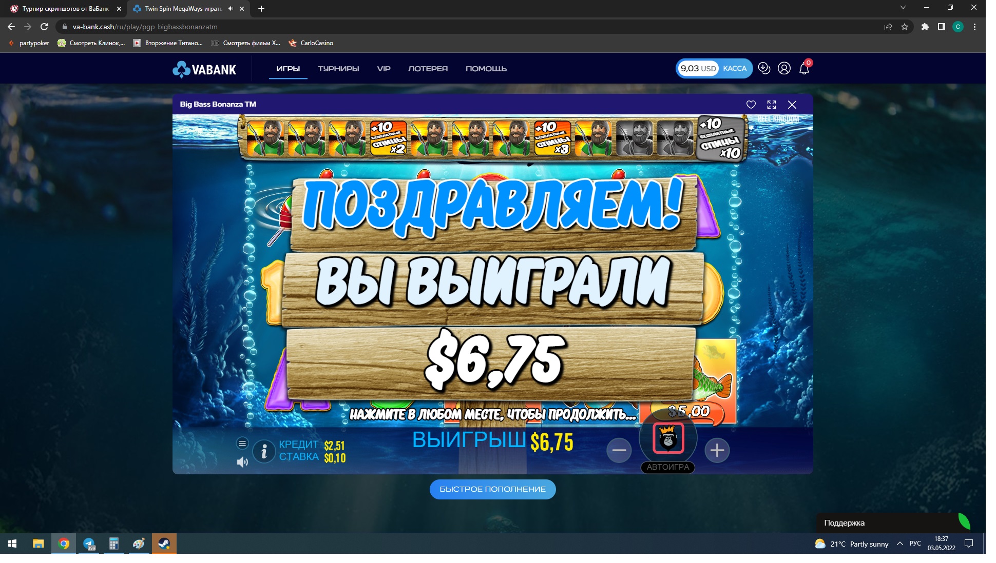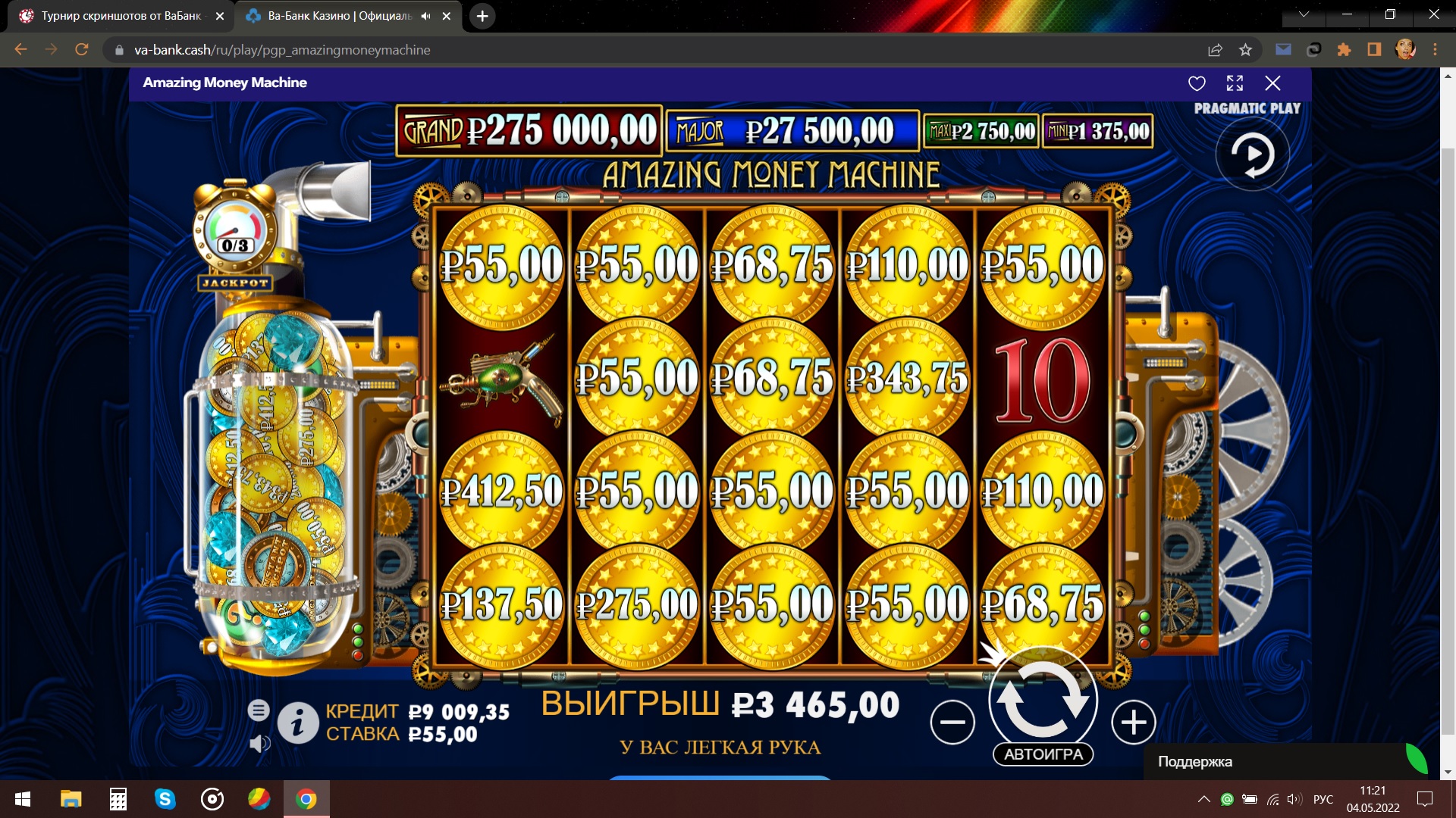 Онлайн казино ВаБанк совместно с форумом CasinoMy проводит конкурс, в котором каждый скриншот заноса от х50 увеличивает размер призового фонда. Чем больше скриншотов — тем выше может быть ваш итоговый приз.
