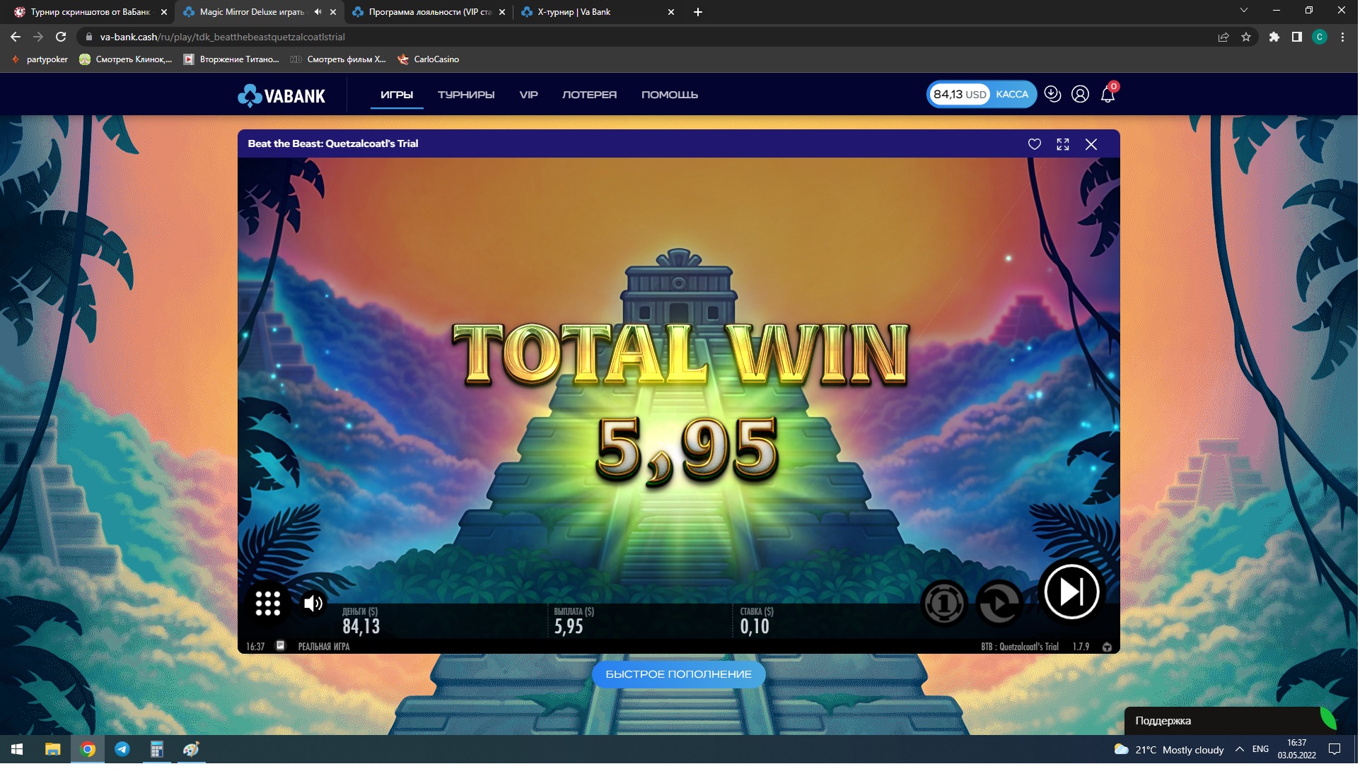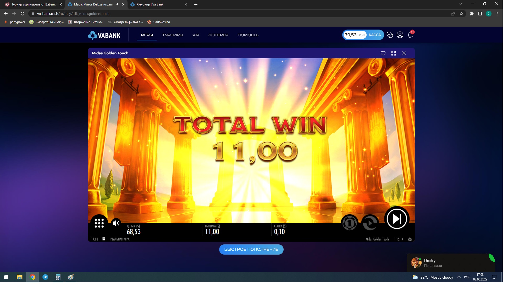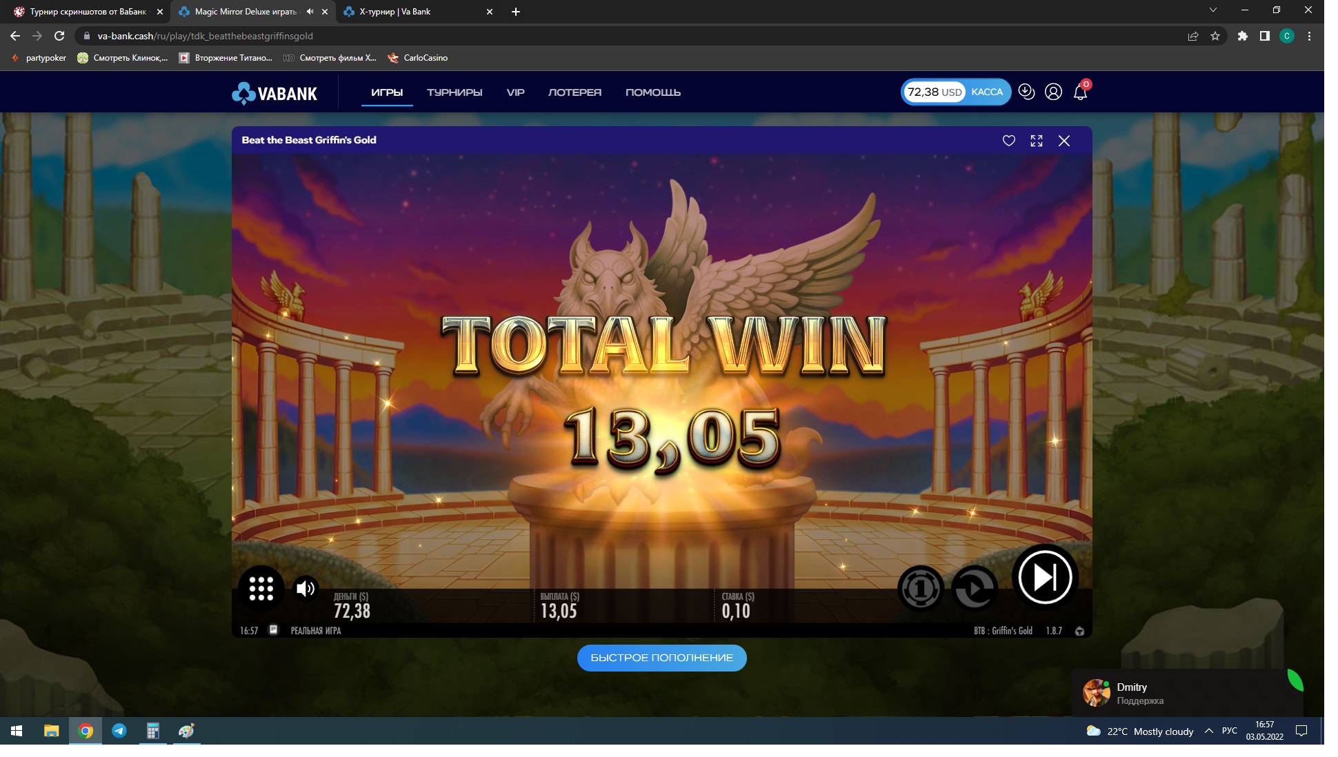 Онлайн казино ВаБанк совместно с форумом CasinoMy проводит конкурс, в котором каждый скриншот заноса от х50 увеличивает размер призового фонда. Чем больше скриншотов — тем выше может быть ваш итоговый приз.