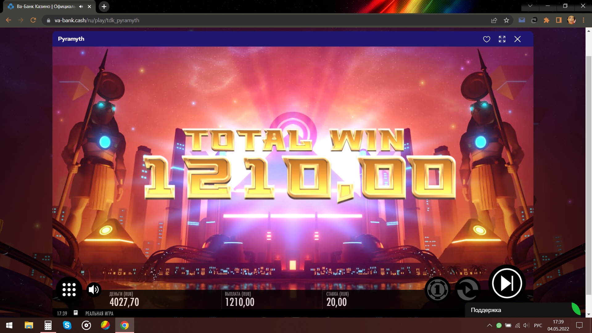 На скриншоте должна быть видна адресная строка или логотип казино (если это версия для ПК).