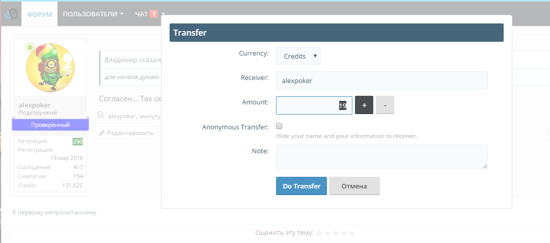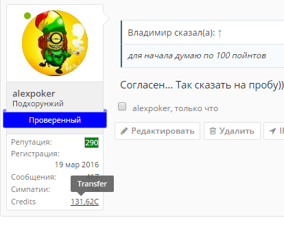 Планируем организовать серию турниров в нашем клубе, но уже с бай-ин. В качестве бай-ин будут ваши пойнты заработанные на форуме. Для участия в турнире надо перечислить ваши пойнты мне, если попадете в призы, то я перечислю ваши призовые вам обратно, обналичивание будет делать Френки, от 1000 пойнтов (10 долларов). Анонсы о планируемых турнирах бүдут в этой теме.