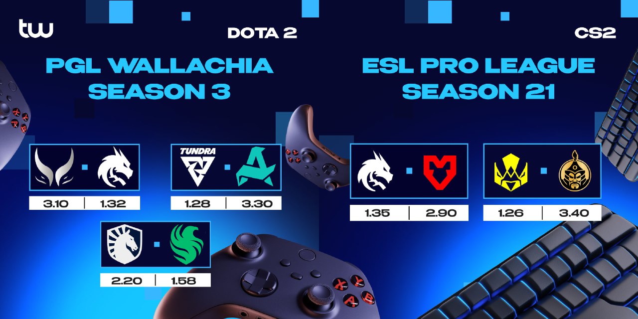 Dota 2. PGL Wallachia Season 3 CS 2. ESL Pro League — Season 21 Пополни счёт на сумму от 1 000₽ и 200% будет автоматически зачислено на твой Бонусный счёт Отыграй сумму бонуса 10 раз, делая одиночные или экспресс-ставки на киберспорт ______________________________ ПЕРЕЙТИ В TWINCASINO