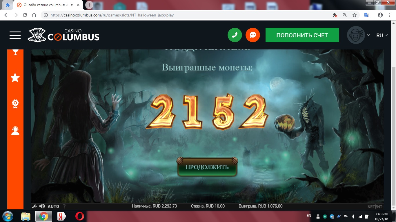 На скриншоте должны быть видны: размер ставки и выигрыш, лого Casino Columbus, дата и время. Мне в личку отпиши свой email или ID, это нужно будет для награждения.