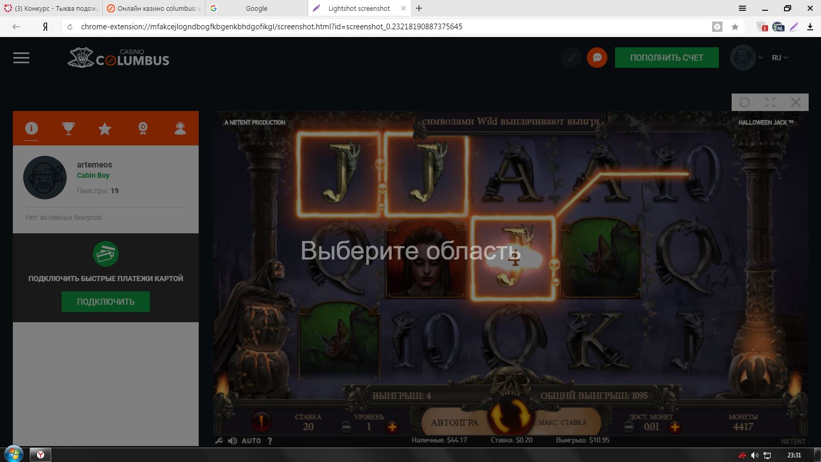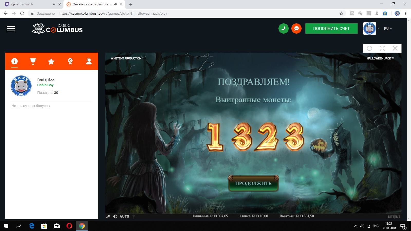 Капитан Casino Columbus умеет кутить, поэтому в день всех святых приготовил чертовски крутой подарок - возможность увеличить депозит на 150%! Активируй бонус с 30 по 31 октября и забирай до €/$ 666 /₽ 36666 в подарок. Минимальный депозит для получения бонуса составляет €/$ 66 /₽ 3666, вейджер х35.