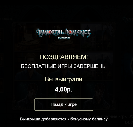 Введи промо код прямо сейчас и играй бесплатно в нашей новой игре Immortal Romance Scratch. Твой промо код ➡ ROMAN3E - 30 бесплатных спинов у тебя в кармане
