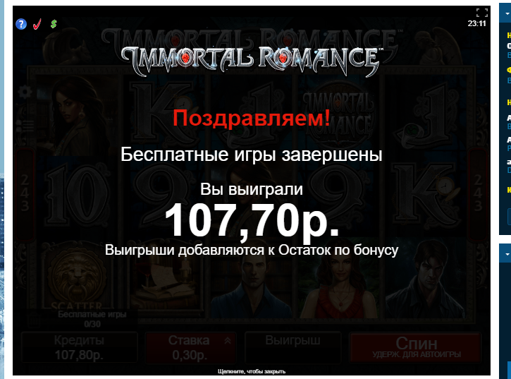 Спасибо Тамарочка хорошего вечера тебеIMDP3U - 30 спинов в Immortal ROmance по 3 руб - 100 активаций