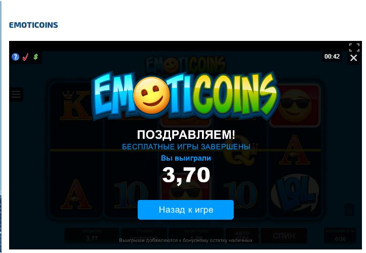 код LIZ20MISVA 30 спинов в EMOTICOINS