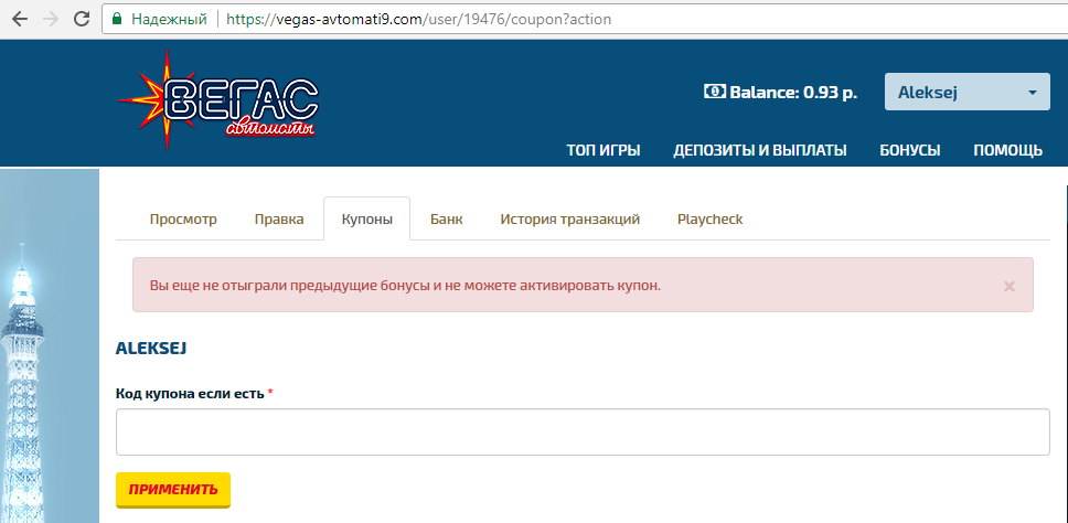 Купон не могу активировать и проверить пишет то что Вы еще не отыграли предыдущие бонусы и не можете активировать купон. На балансе 8 копеек что за бонус ХЗ))))