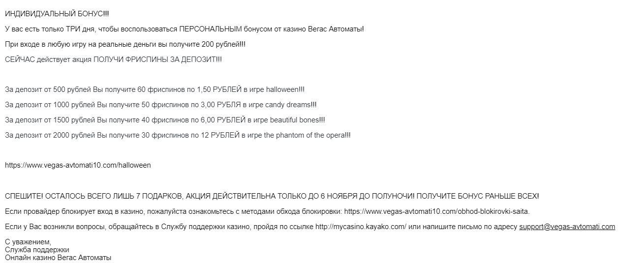 Мне звонили когда я у них выиграл турнир какой то или розыгрышь, я сам не участвовал но сказали выиграл))) дали спинов 20 по 15 руб вроде и я слил)))