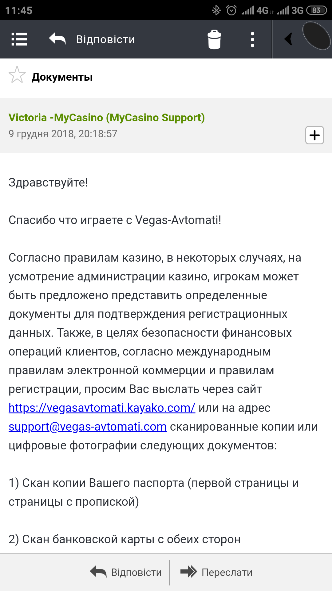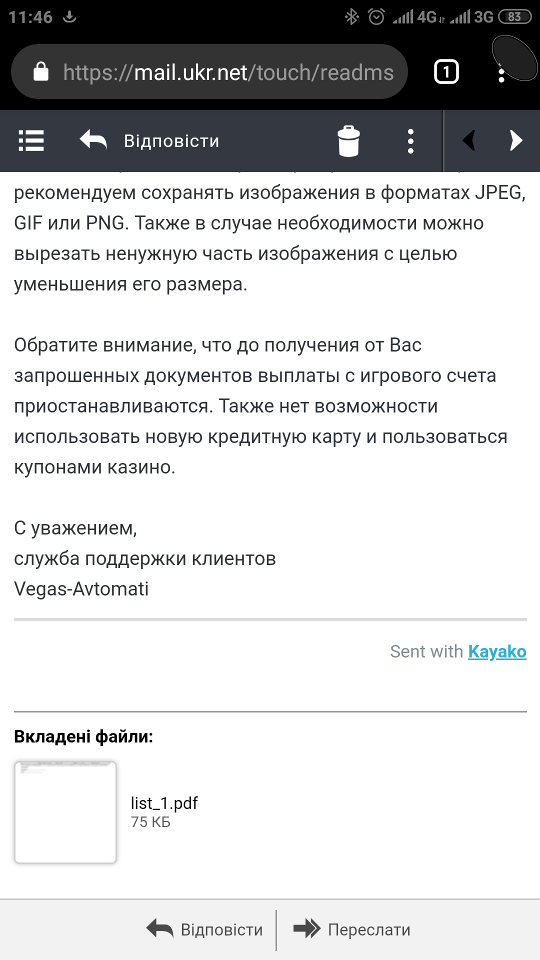 Депнул в эту шарагу совсем немного, дабы время убить по микроставкам. Ничего не заносил, ничего не выводил, только деп, а они мне на почту письмо и расписку))