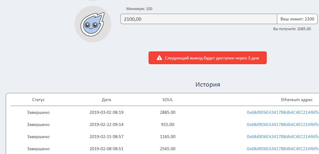 Продолжаю успешно выводить монетки с CryptoSoul -