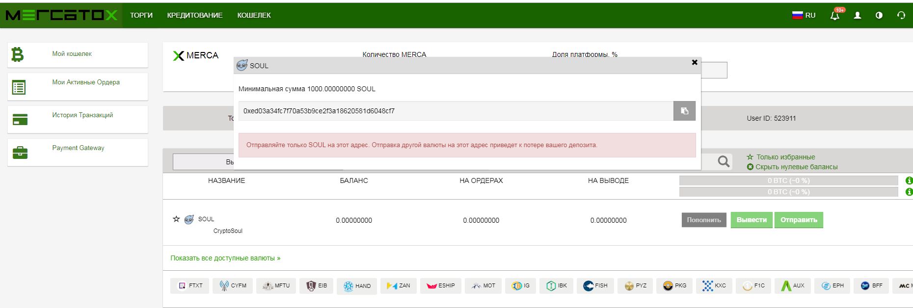 Зарегалась на этом сайте, только как туда вывести soul валюту и поменять адрес как взять кошелька, я в этом вообще не понимаю. На этом сайте обезательно документы грузить?