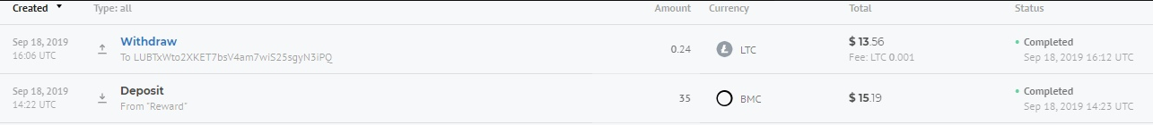 В течении нескольких дней получаем 10$ монетой BMC, меняем её на Биткоин, а его в любую другую монету. Смотрите по комиссии на вывод.